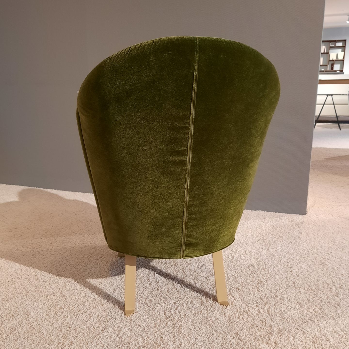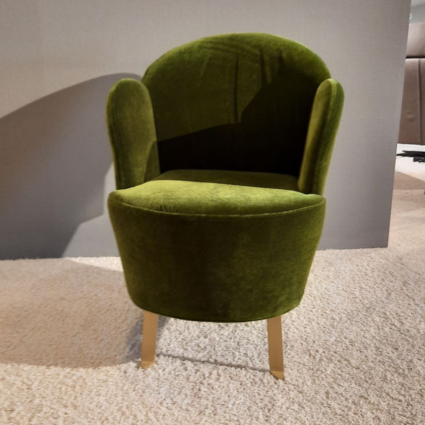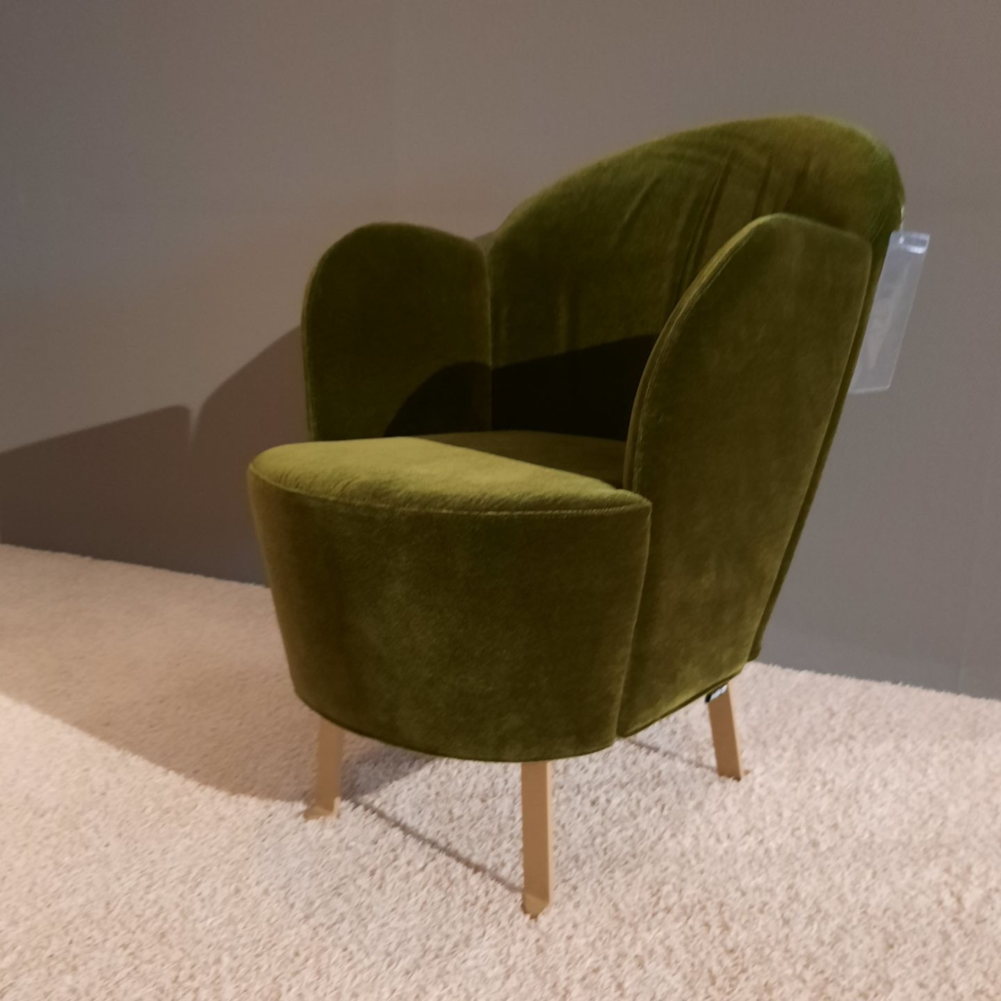 Der moderne Designersessel ist im Design der 50er/60er Jahre inspiriert und hat einen Hauch von Glamour durch die goldenen Füße.
