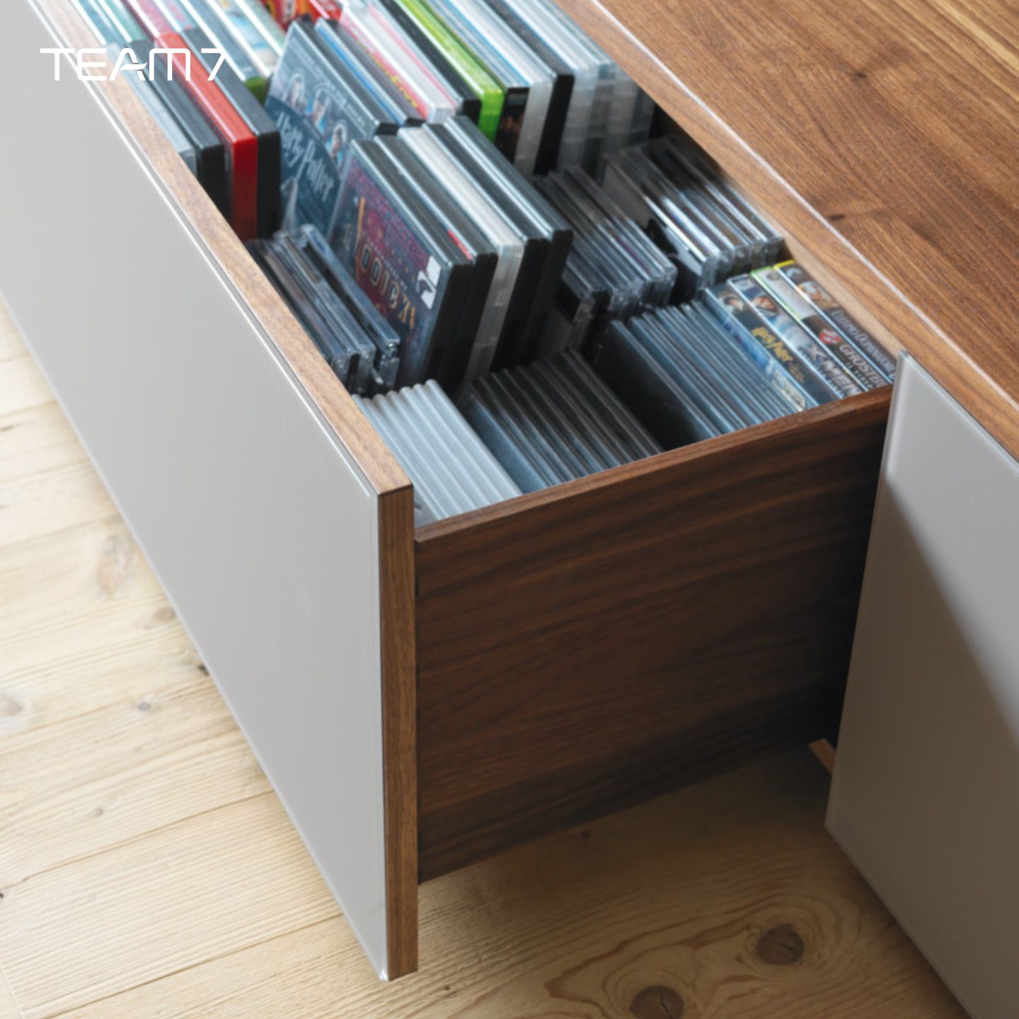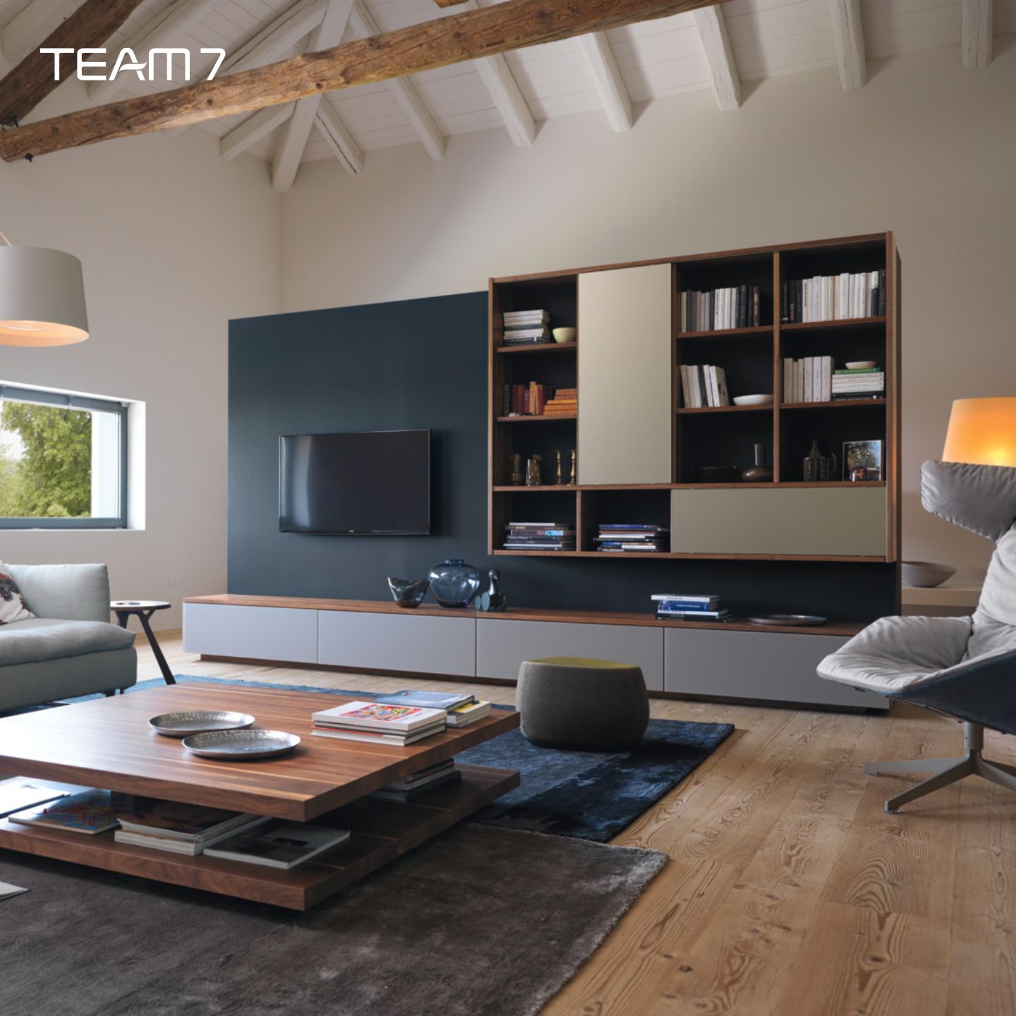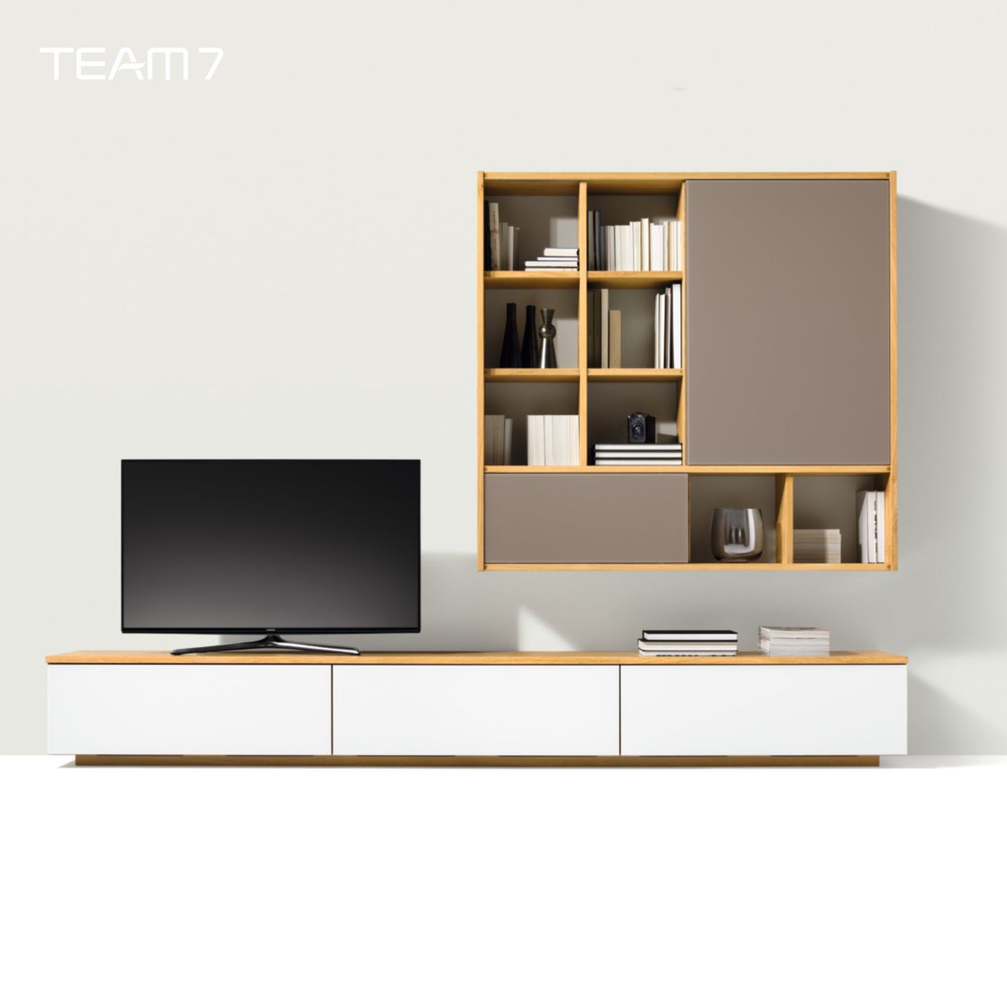 Gleichzeitig bleibt die Stärke von TEAM 7 erhalten: Viele Maße, Holzarten und Glasoberflächen in Wunschfarbe (wie bereits beschrieben) ermöglichen eine Wohnwand, die nicht „von der Stange“ wirkt, sondern wie ein fester Bestandteil Ihrer Innenarchitektur.