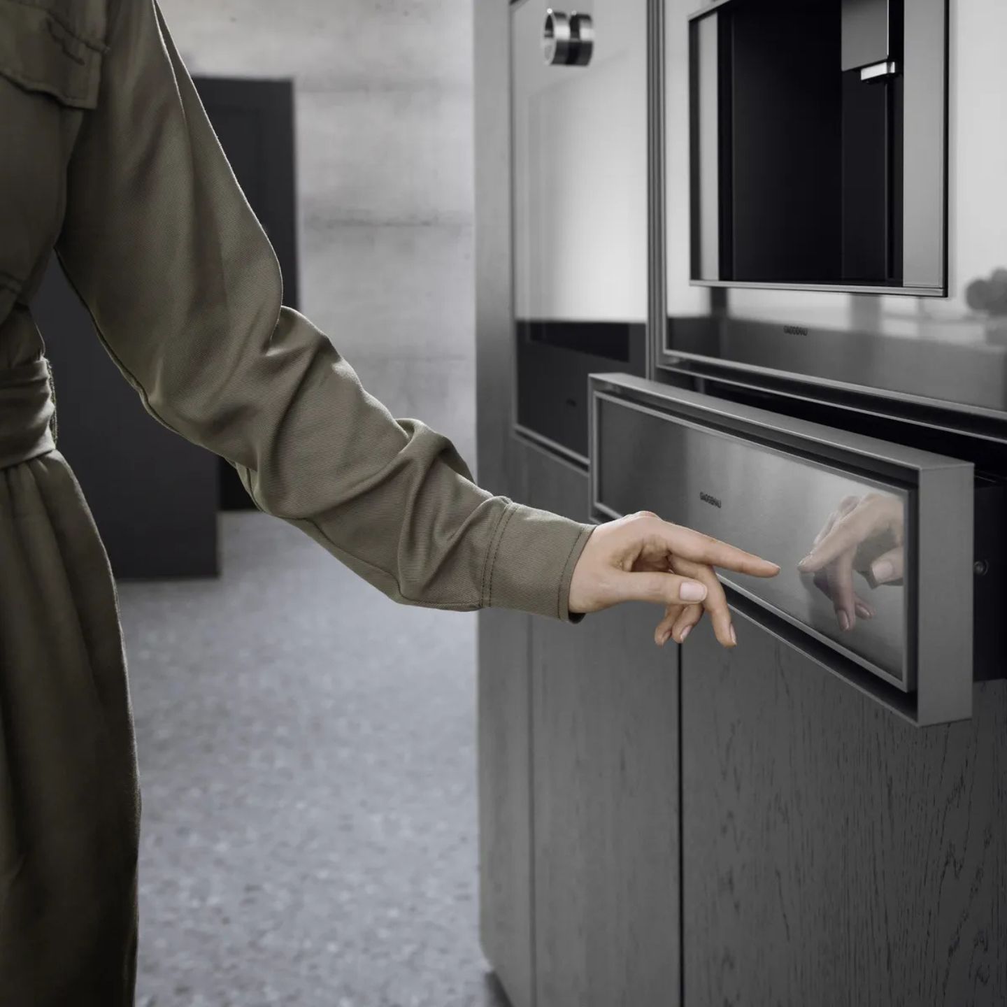 Ihr dezentes Design und die Push-to-Open-Funktion ermöglichen eine elegante, grifflose Integration in die Küchenfront. Damit ist die Wärmeschublade nicht nur praktisch, sondern auch ein ästhetisches Statement.