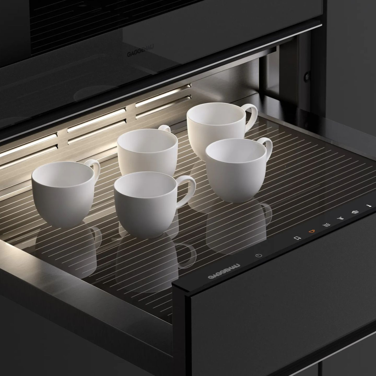 Erleben Sie die Gaggenau Wärmeschublade in verschiedenen Größen zwischen 14 cm und 28 cm Höhe – in der größten Variante sogar mit zweitem Rost.