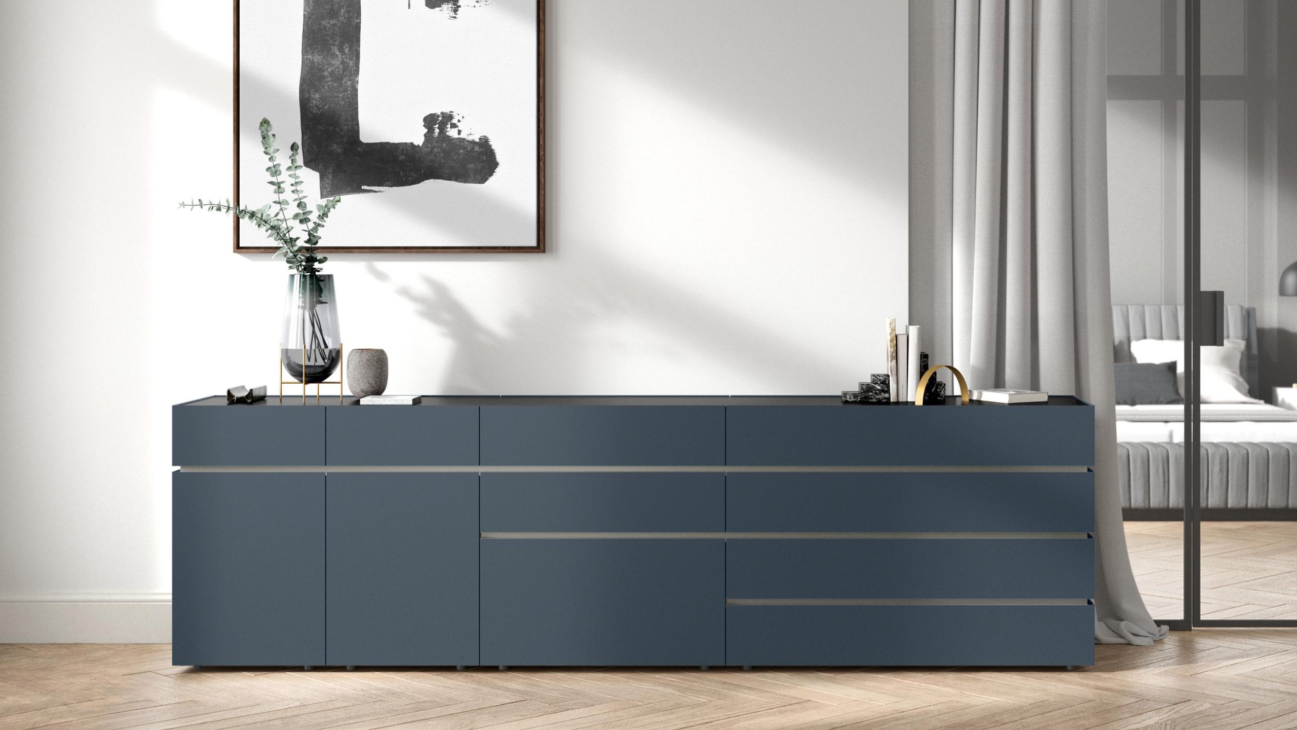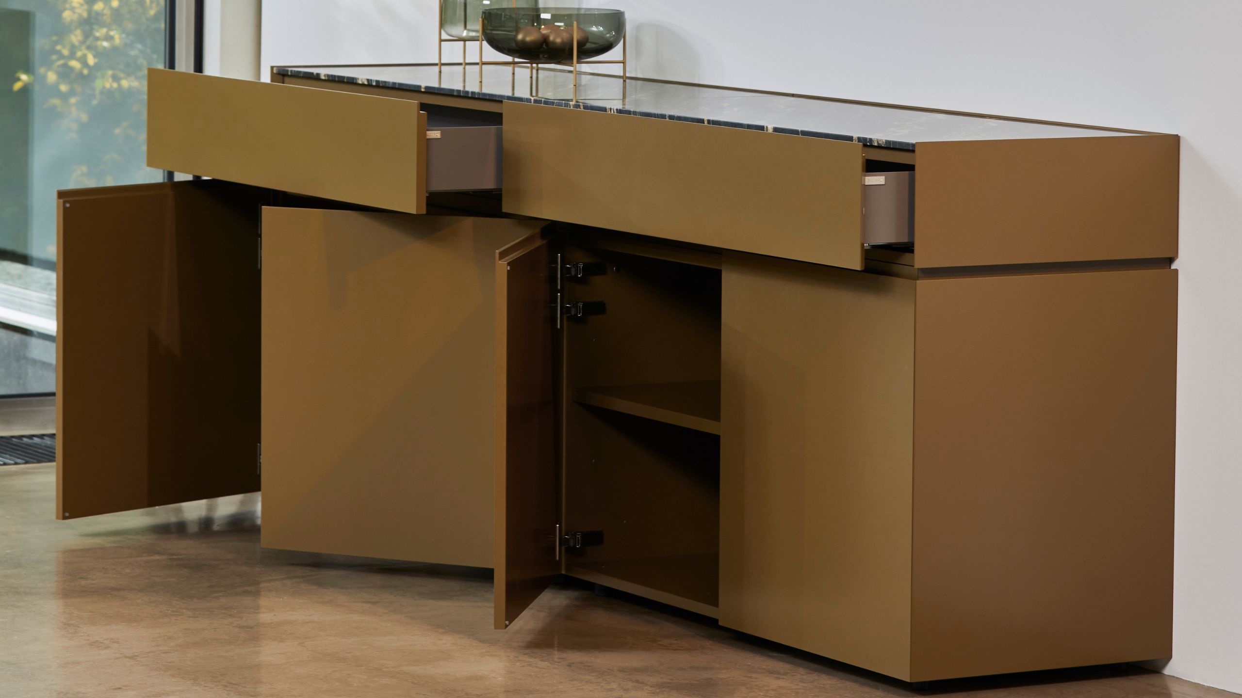 Eine raffinierte Neuerung der Serie Just Cube ist eine neue Bestellvariante der Abschlussplatte. Erhältlich ist nun auch eine herausragende, gefaste Abschlussplatte, die perfekt auf das Sideboard Cube Bold abgestimmt ist.
