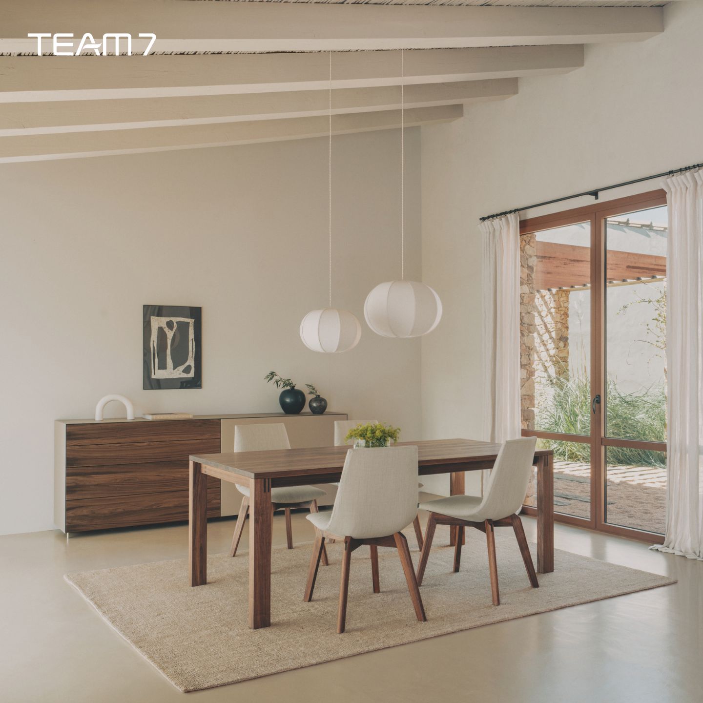 Wir führen TEAM 7, weil hier Design und Naturholz-Kompetenz nicht als Widerspruch verstanden werden, sondern als Anspruch. Die Wurzeln reichen bis 1959, als in Ried im Innkreis eine Tischlerei gegründet wurde; 1965 wurde TEAM 7 als Marke eingetragen.