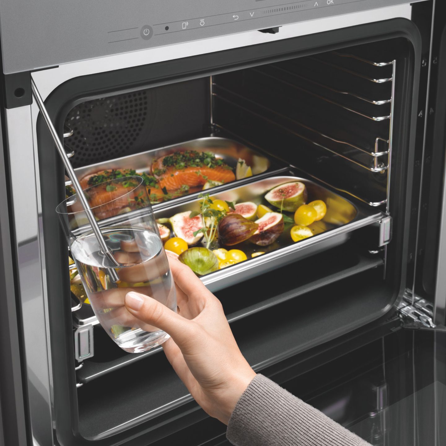 Zusätzlich unterstützt der Dampfgarer das Sous-vide-Garen, bei dem Sie Fleisch, Fisch oder Gemüse bei niedrigen Temperaturen im Vakuumbeutel garen und so eine außergewöhnliche Zartheit und Aromaintensität erreichen.