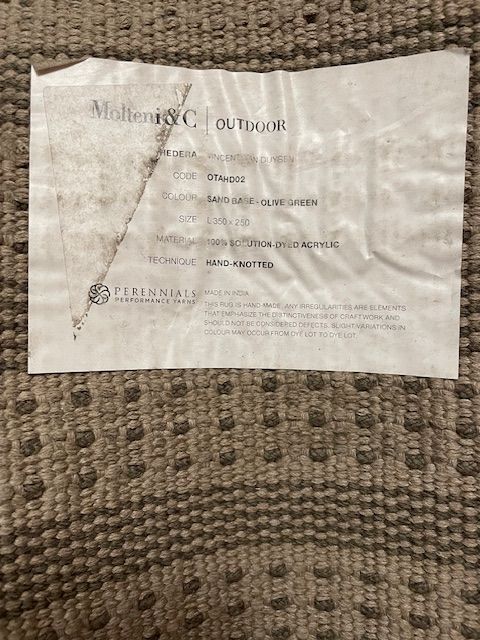 Hedera ist ein handgeknüpfter Teppich, der von Vincent Van Duysen entworfen wurde und Einfachheit und Raffinesse in einem grafischen Spiel mit starker visueller Wirkung vereint. Die rechteckige Oberfläche zeichnet sich durch einen eleganten Rhythmus aus dünnen beige- und olivgrünen Streifen aus, die sich in einem harmonischen und dynamischen Fluss abwechseln. Das Design wird durch ein zartes Fleckenmotiv bereichert, das an die natürliche Maserung von Holz und die rohe Materialität von brüniertem Eisen erinnert und einen nüchternen, aber entschiedenen Charakter zum Ausdruck bringt. Dieser Teppich aus 100 % lösungsgefärbtem Acryl bietet Widerstandsfähigkeit und Langlebigkeit sowie eine Farbpalette, die sich perfekt in zeitgenössische und natürliche Kontexte einfügt. Abmessungen: H 1 cm, B 350 cm, T 250 cm.