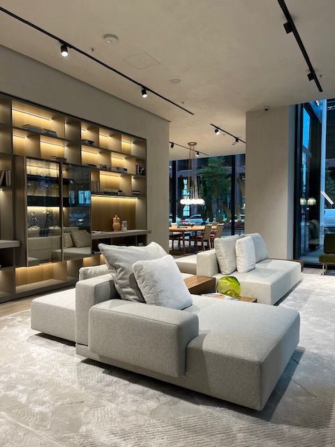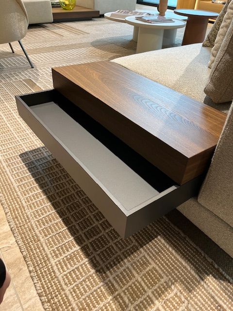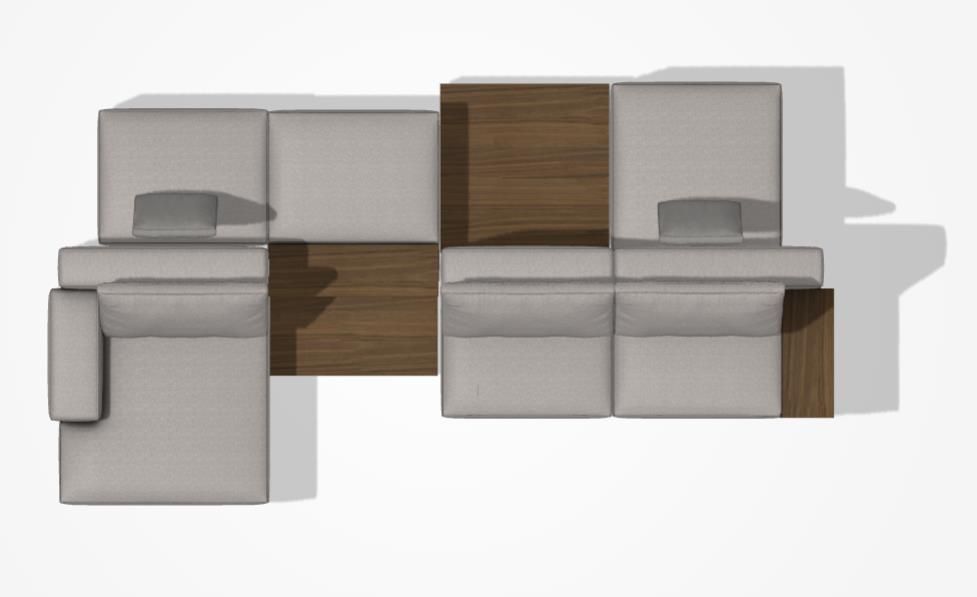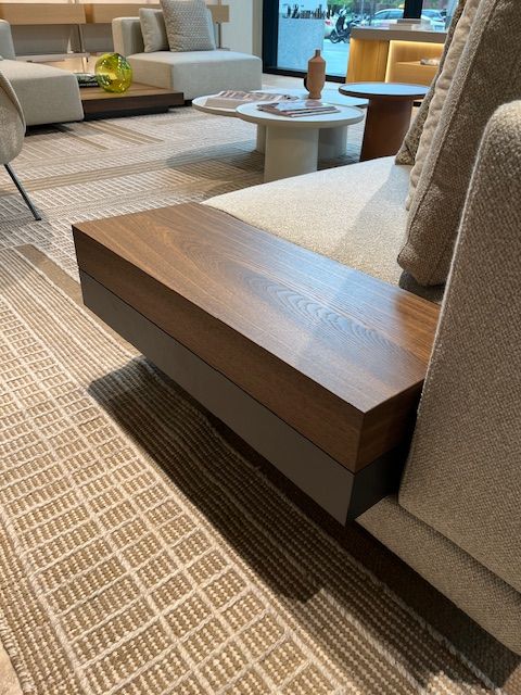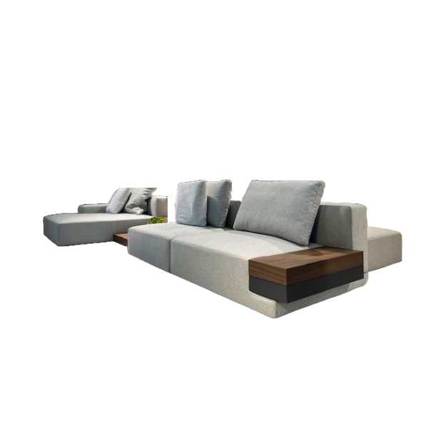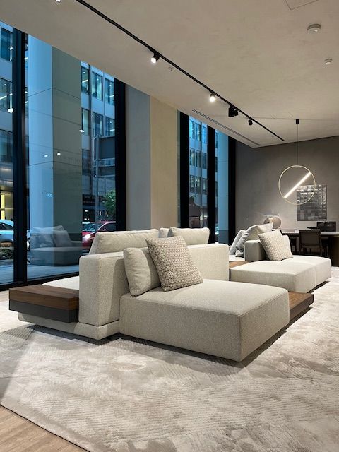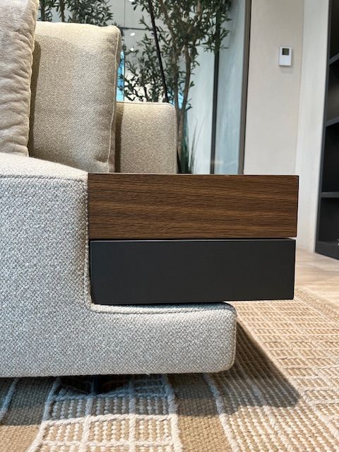 Marteen ist ein innovatives Sitz- und Aufbewahrungssystem, das von Vincent Van Duysen entworfen wurde, um die Bedürfnisse des modernen Wohnens mit Eleganz und Flexibilität zu interpretieren. Das Design verbindet formale Strenge und Funktionalität und spielt mit einer raffinierten Balance zwischen vollen und leeren Räumen, Materialoberflächen und architektonischen Volumen. Die modulare Struktur ermöglicht eine große Gestaltungsfreiheit: Ob linear, als Eckelement oder als Insel, Marteen passt sich perfekt an moderne Wohnkontexte und offene, gesellige Räume an. Die multifunktionale Armlehne dient sowohl als Stauraumelement als auch als Stütze und fügt sich harmonisch in die Auflageflächen aus edlen Materialien ein. Der Bezug aus KH 513 Kiwi-Stoff in Kombination mit Details aus Thermo-Eiche und Metallfüßen in Zinnoptik verleiht dem Sofa einen raffinierten und dennoch einladenden Charakter. Die frei platzierten und großzügig gepolsterten Rückenkissen garantieren hohen Komfort, während die schwebende Wirkung der Struktur ein Gefühl von Leichtigkeit vermittelt. Abmessungen: H 67 cm, B 456 cm, T 197 cm.