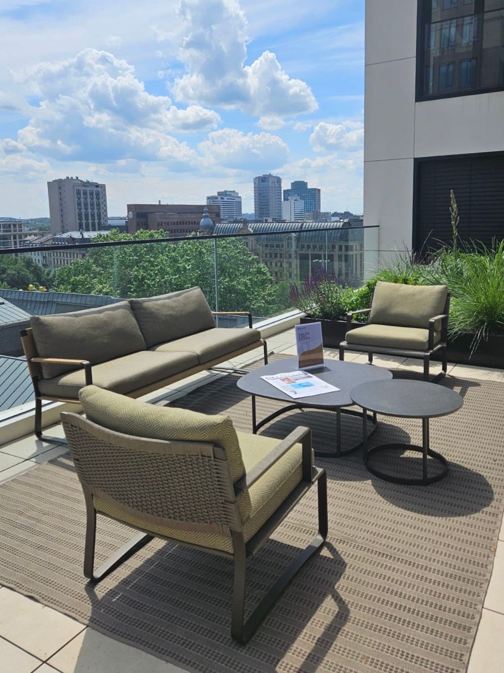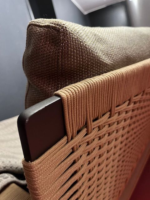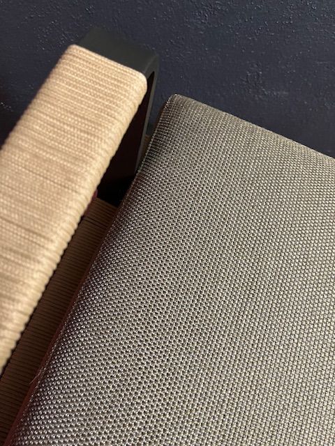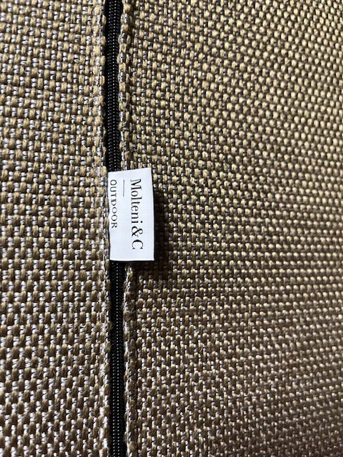 Das Outdoor-Sofa Phoenix, entworfen von Vincent Van Duysen für Molteni&C, verkörpert die perfekte Balance zwischen essentiellem Design und mediterranem Geist. Der leichte Aluminiumrahmen in Kombination mit einer raffinierten Bronzeoberfläche und einem handgewebten Polypropylenseil verleiht dem Sofa eine schlichte und zeitgemäße Eleganz, die sich ideal zur Aufwertung jeder Außenumgebung eignet. Es ist auf Langlebigkeit ausgelegt, vollständig rost- und korrosionsbeständig und bietet selbst in den exponiertesten Außenbereichen eine dauerhafte Lösung. Die mit Bristol OB0143-Stoff bezogenen Kissen sind abnehmbar und waschbar und sorgen für Komfort und Funktionalität, ohne dabei Abstriche beim Stil zu machen. Das Dessert (GD)-Seil rundet das Design mit einer natürlichen und raffinierten Note ab. Bitte beachten Sie, dass nur das Sofa zum Verkauf steht, während die auf den Bildern sichtbaren Dekorationsgegenstände nicht im Lieferumfang enthalten sind. Abmessungen: H 70 cm, B 180 cm, T 80 cm.