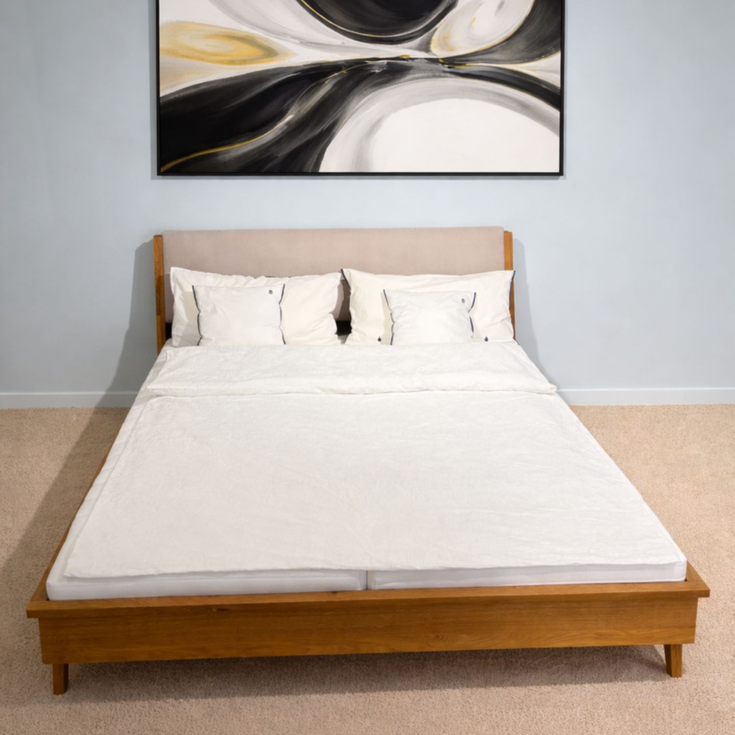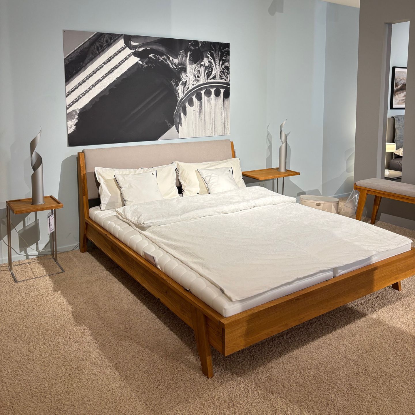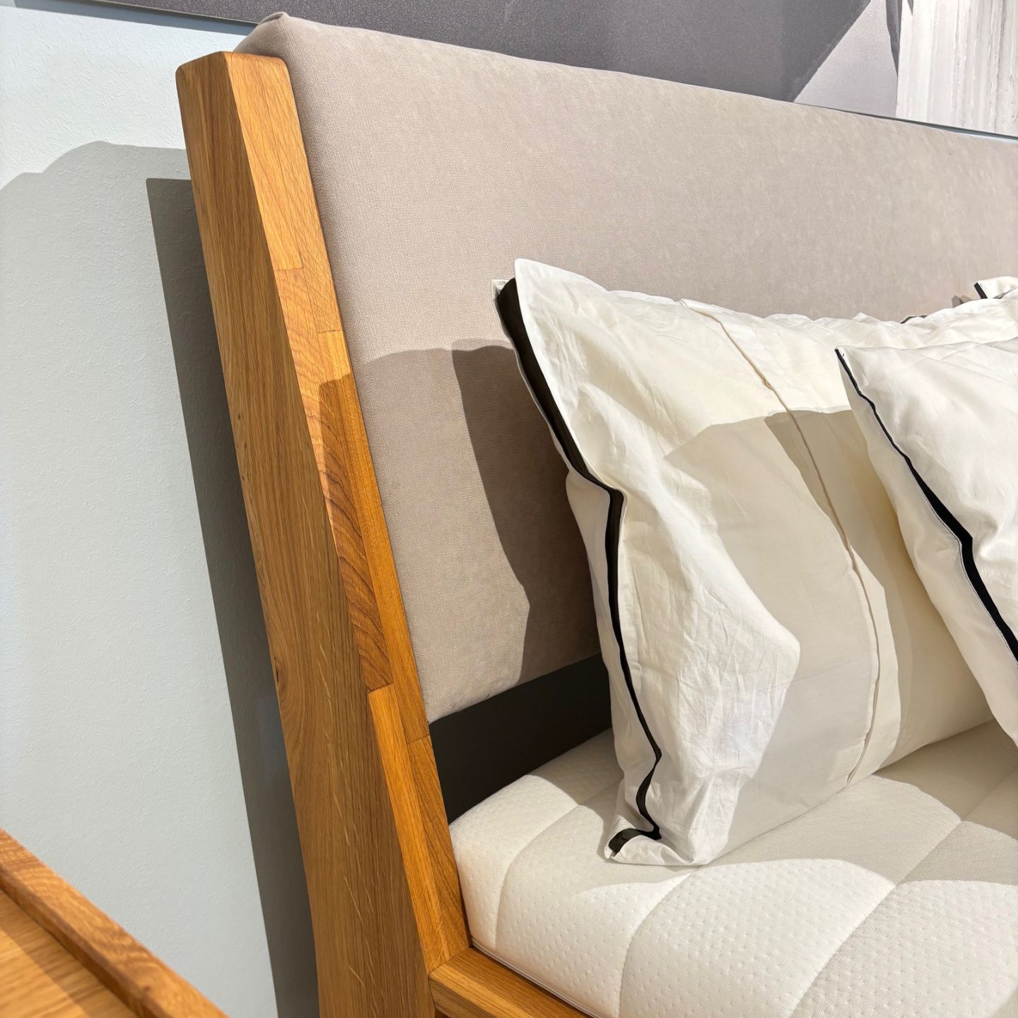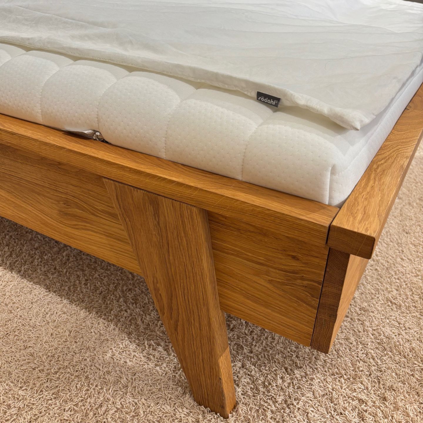 Das Bett ist aus massivem Wildeichenholz gefertigt.
